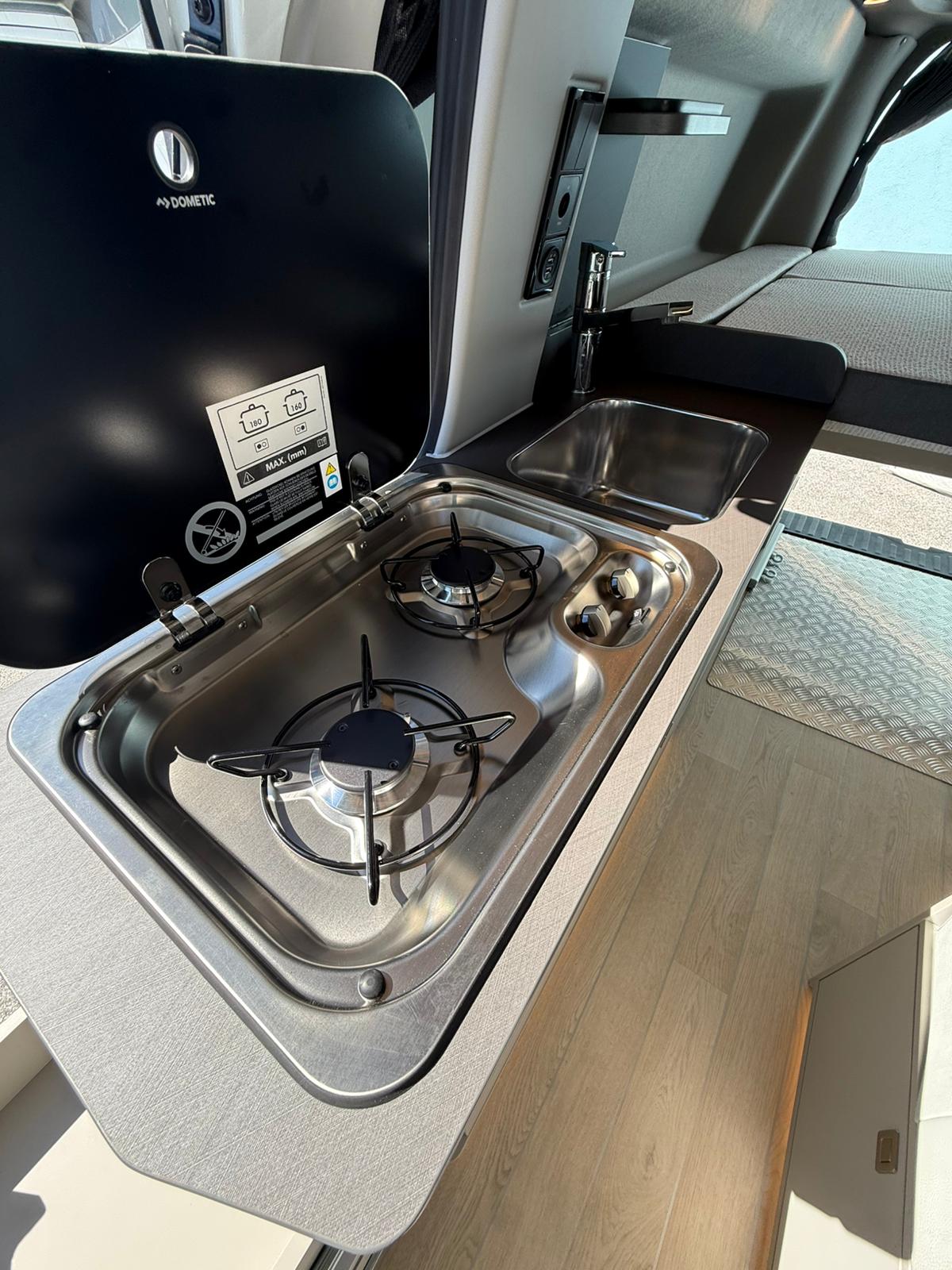 Cucina con lavello e due fornelli